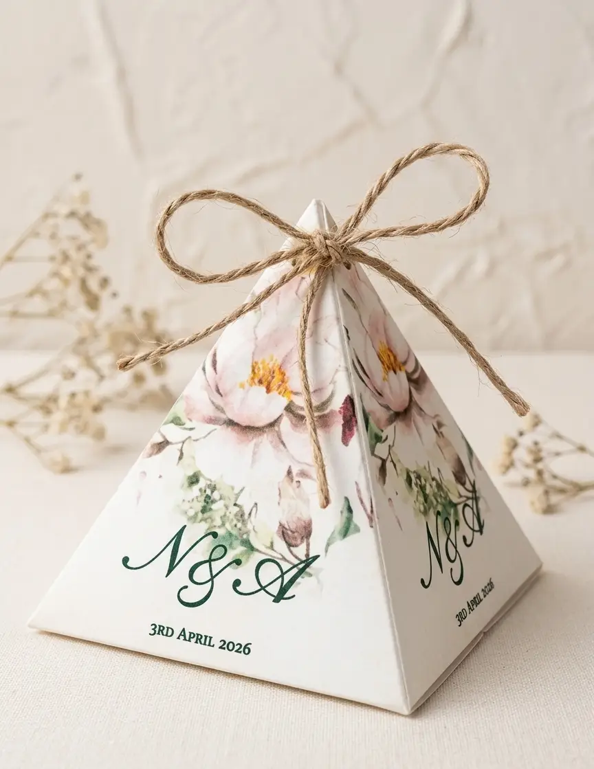 unique jute rope bow with flowers printing & custom name on nikkah box